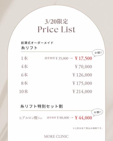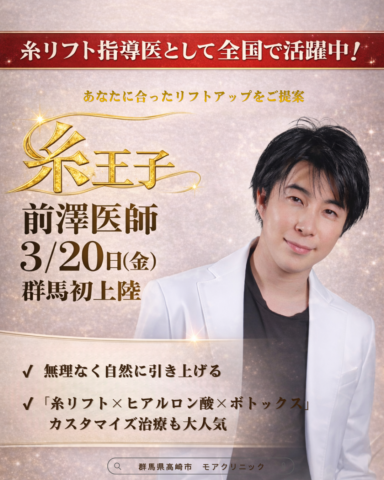 このたびモアクリニックに全国で糸リフトの指導医として活躍中の「糸王子」こと前澤彬人医師 が来院し、特別施術を行うことが決定いたしました!